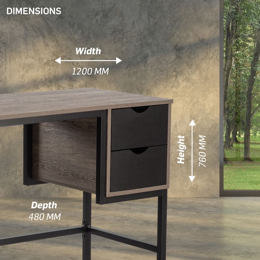 - The desk measures 120cm (L) x 48cm (W) x 76cm (H) and weighs 23kg.