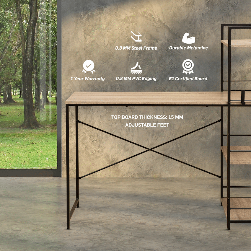 Keep your workspace tidy and productive with the Everfurn Regal Desk. It includes an integrated tiered bookshelf for organised vertical storage. Made from durable engineered wood with a melamine finish and a steel frame, this desk is a practical Everfurn item for any office.