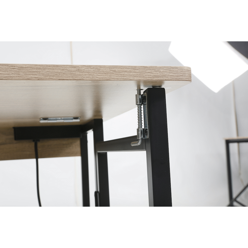 • The desktop is made from engineered wood with water- and scratch-resistant melamine lamination for durability.