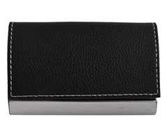 Present business cards professionally with this Executive Card Holder. Made from stainless steel and Koskin, it offers a compact, lightweight design. This black card holder is an excellent promotional item, making it suitable for corporate branding with various print options.