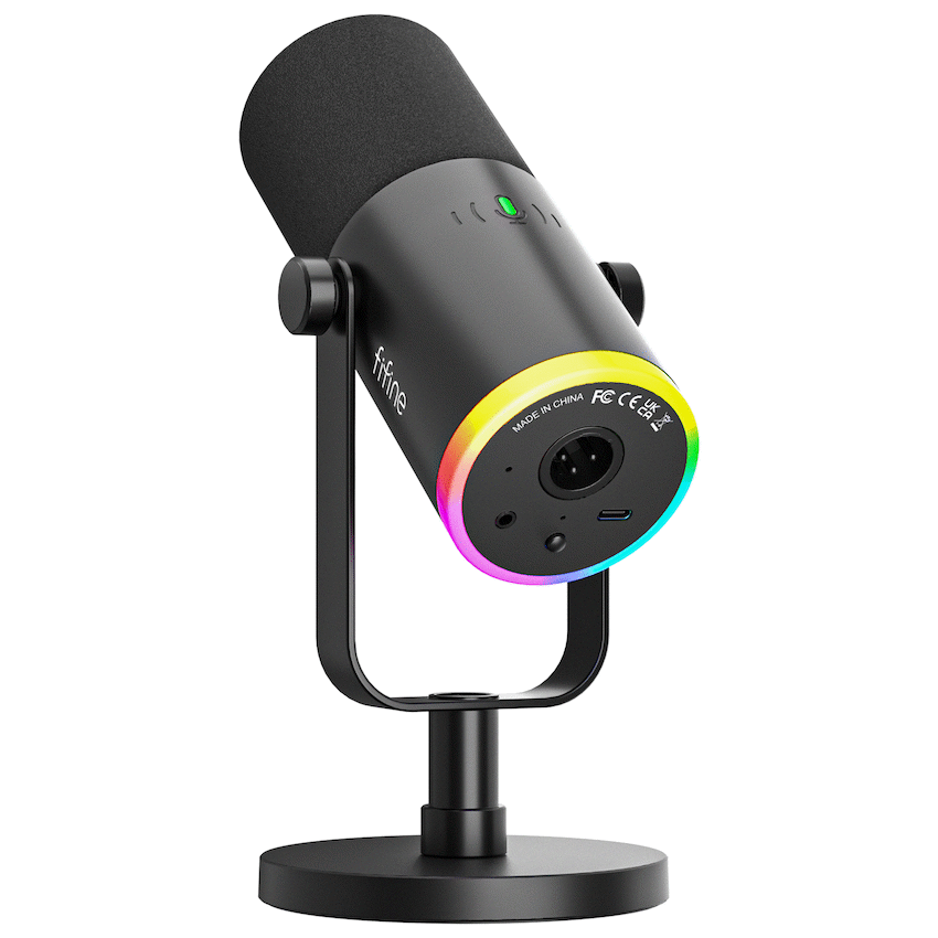 The Fifine AM8 NEO microphone provides reliable sound for content creation and virtual meetings. It offers dual USB-C and XLR ports for flexible connection, alongside customisable RGB lighting. Easy on-mic controls manage monitoring, mute, and gain. This is the Fifine AM8 NEO RGB Dual Port Microphone.