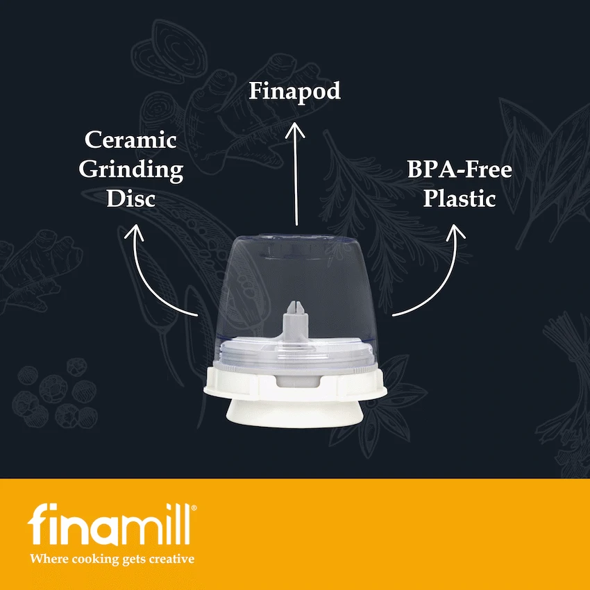 Grind spices fresh with ease using the FinaMill Battery-Operated Grinder. It includes a durable ceramic grinding disc for consistent results and an integrated LED light for visibility. This practical FinaMill grinder offers convenience in any kitchen.