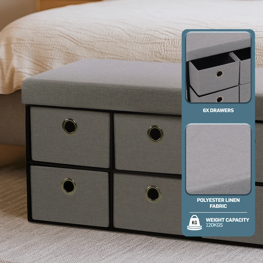 Foldable Storage Ottoman with Six Drawers