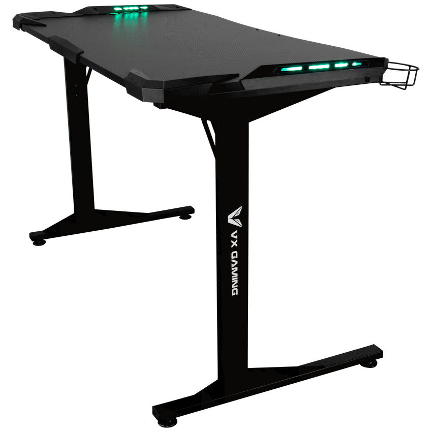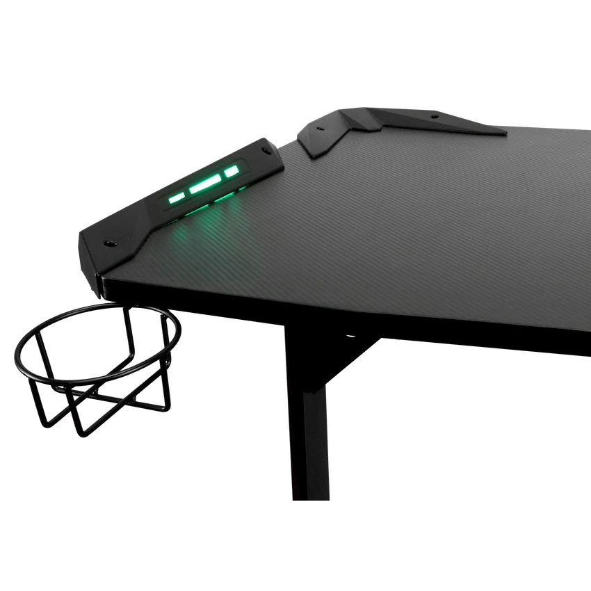 Fortress Gaming Desk with RGB Lights, Cup Holder