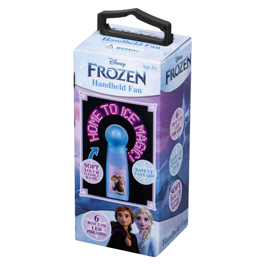 Stay cool with this lightweight Disney Frozen handheld fan. It provides a personal cooling breeze and features popular Frozen characters. Its compact design makes it simple to carry, perfect for warm days and Disney fans.