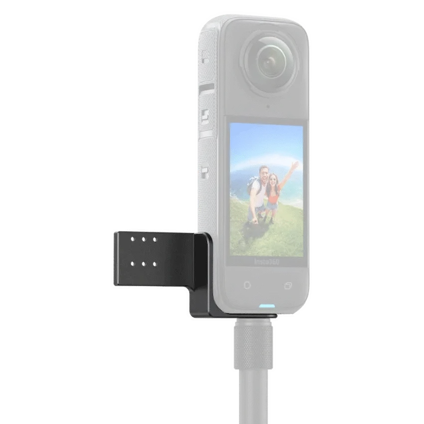 - It attaches easily to an Insta360 X5 camera, fitting between the camera and a selfie stick or tripod without the need for screws.