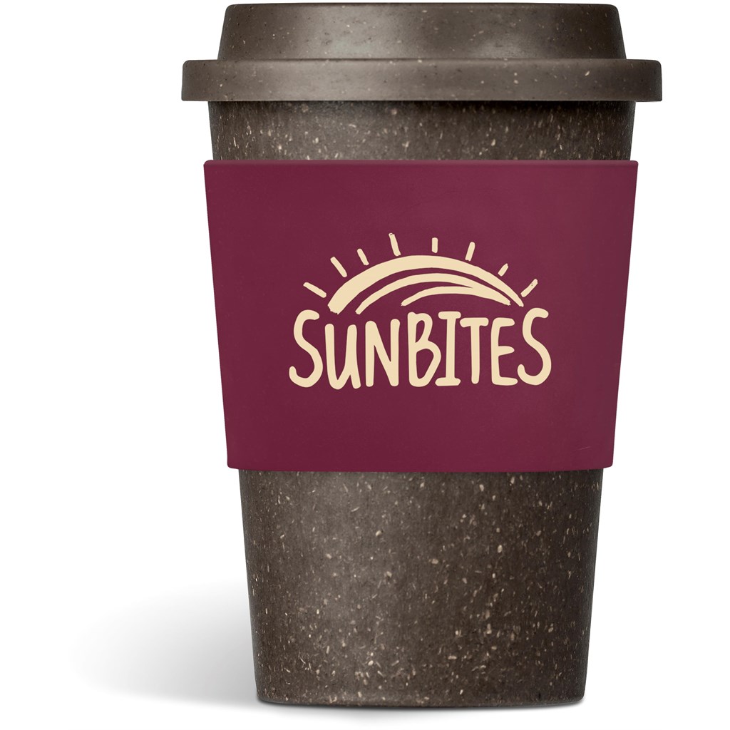 - This 400ml tumbler is made from a blend of melamine and coffee grounds, with a silicone band.