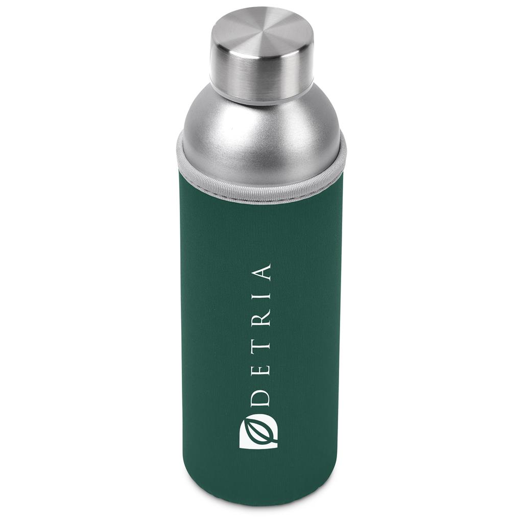 - Manufactured from clean, BPA-free recycled aluminium with a silver finish, a stainless steel lid, and a neoprene sleeve.