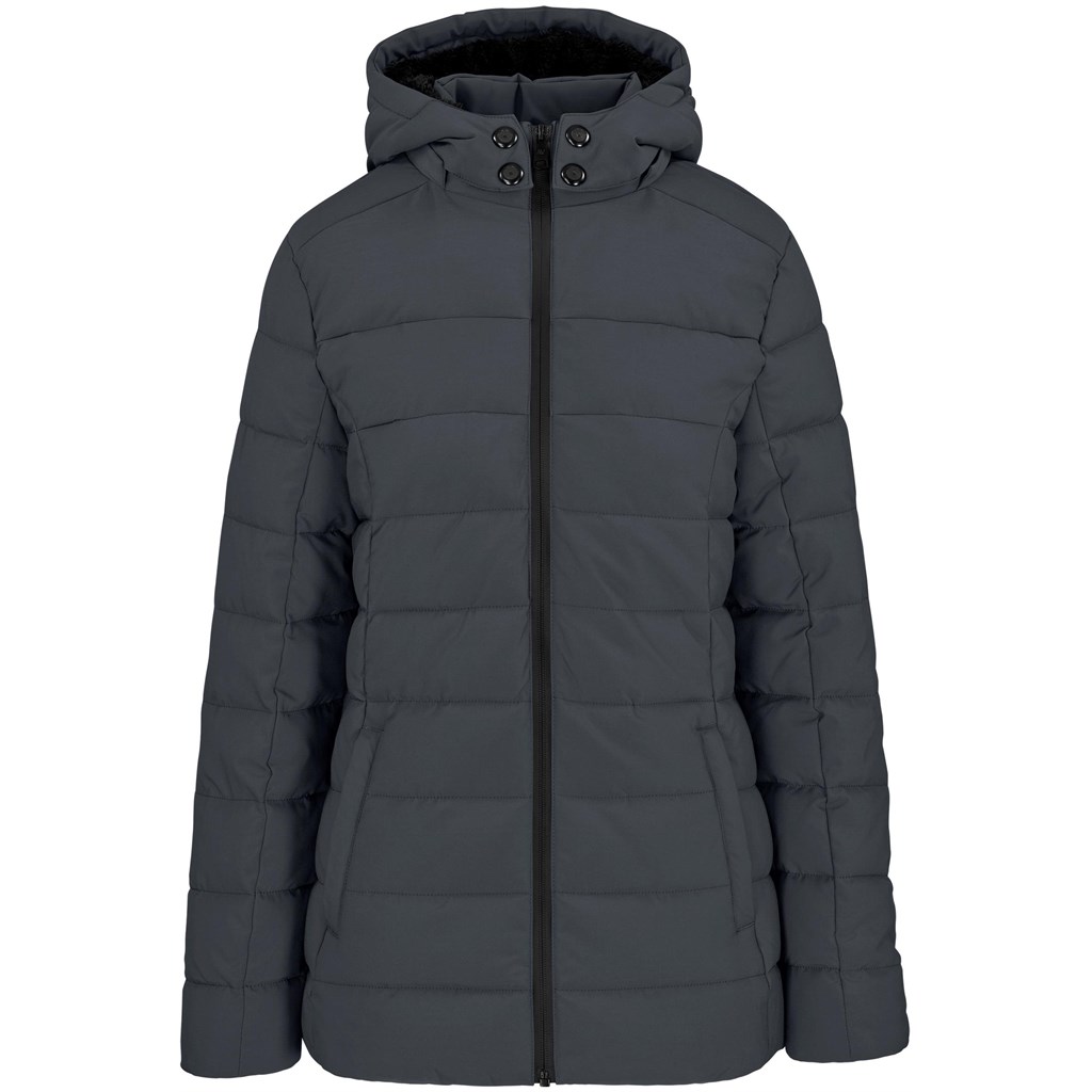 The Ladies Alex Varga Iveroc Jacket is a quality item for promotional branding. It features a fully padded quilted outer, made from 100% polyester, for warmth. A plush fleece inner provides comfort, and the detachable hood allows adaptable wear for staff or clients.