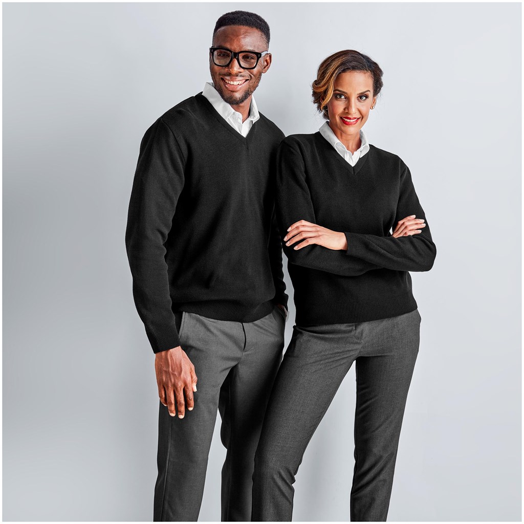 This Ladies Heavyweight Ecuador V-Neck Jersey provides a smart, comfortable option for corporate wear. Made from 100% acrylic 10 gauge knit, it offers a classic heavyweight feel with ribbed V-neck, cuffs, and hem. It helps businesses present their brand professionally.