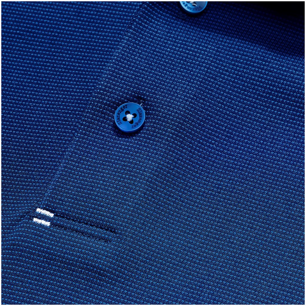 • Designed with a two-piece self-fabric collar, a three-button placket with contrast stitching, and contrast inserts at the shoulders and back.