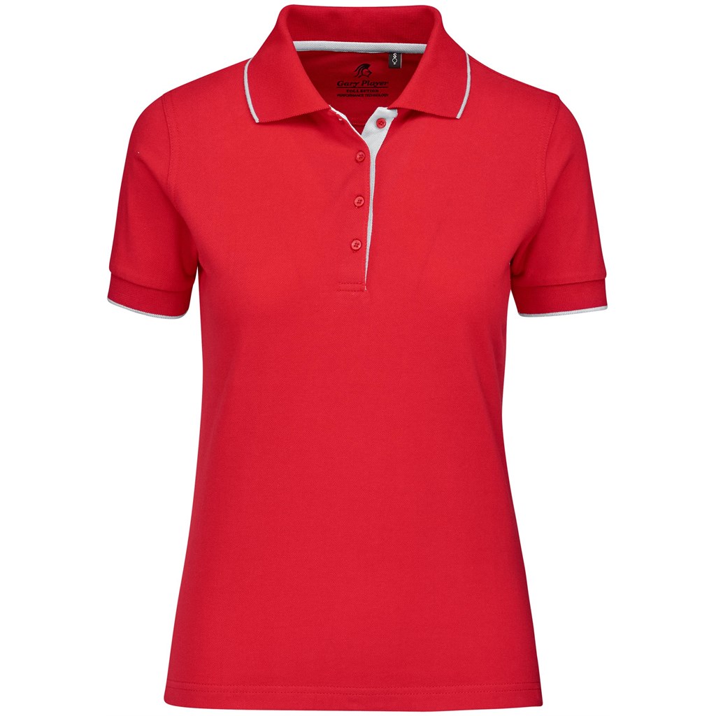 - This shirt features a tailored ladies’ fit, a knitted rib collar, and a two-button placket for a classic look.