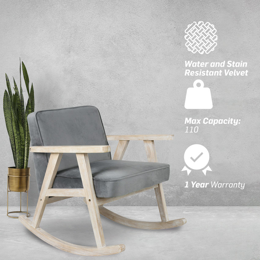 - This rocking chair measures 73cm long, 64cm wide, and 83cm high, providing a good seating space.