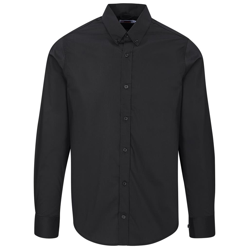 This Men’s Long Sleeve Sheffield Stretch Shirt provides smart comfort for staff uniforms or promotional activities. Its lightweight 115g/m² polyester, cotton, and spandex blend allows for easy movement. Features include a button-down collar and adjustable cuffs, suitable for professional branding.