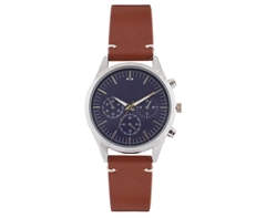 - The watch features a durable leatherette strap, available in Tan & Silver colour options.