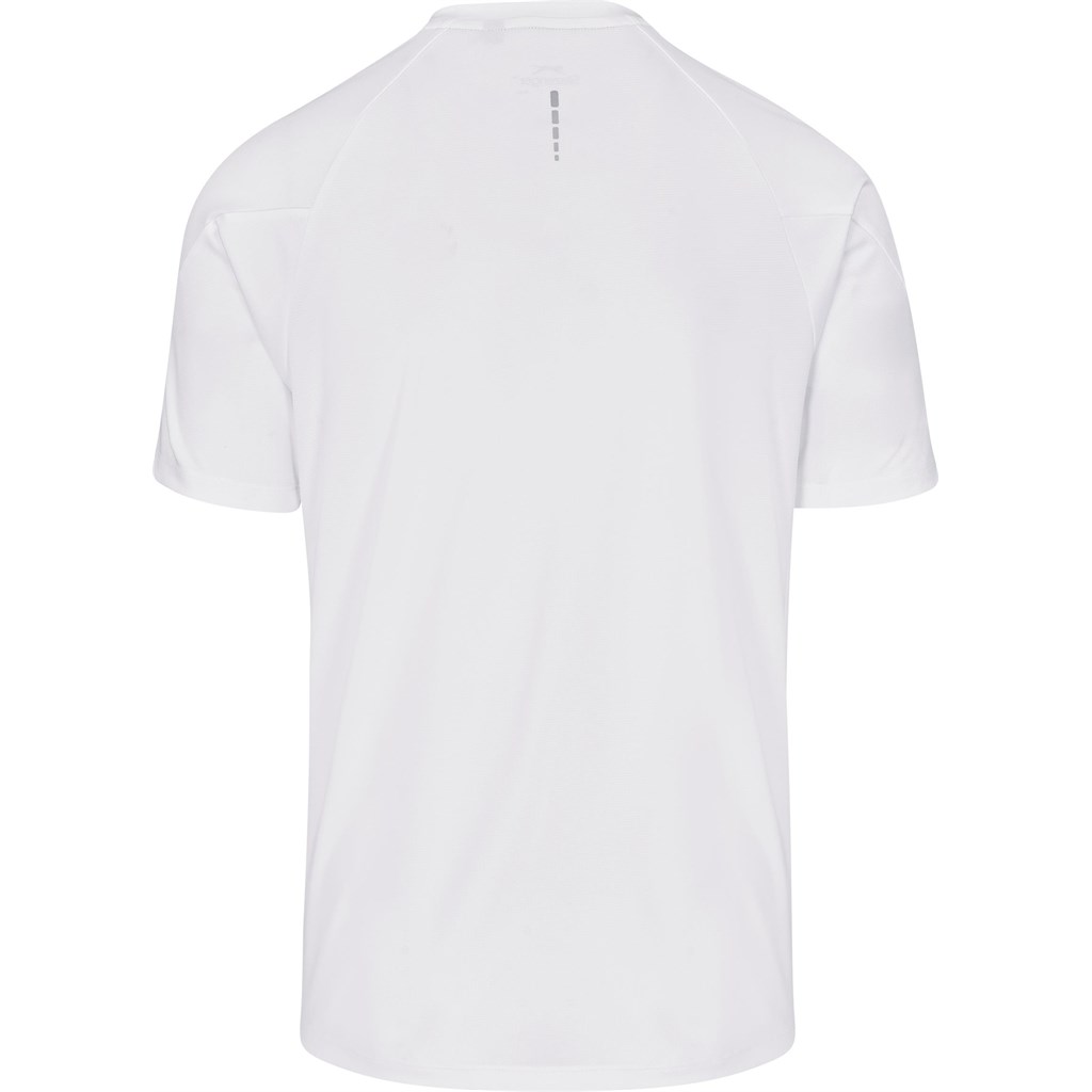 This Slazenger Endurance T-shirt offers comfort and performance for active wear. Made from 100% polyester, it has moisture-wicking and anti-bacterial finishes. Reflective details add visibility. It is a practical choice for promotional use, carrying the trusted Slazenger name.