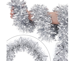 This Metallic Silver Tinsel Garland offers a simple yet effective item for general promotional use, adding a festive touch to any setting.