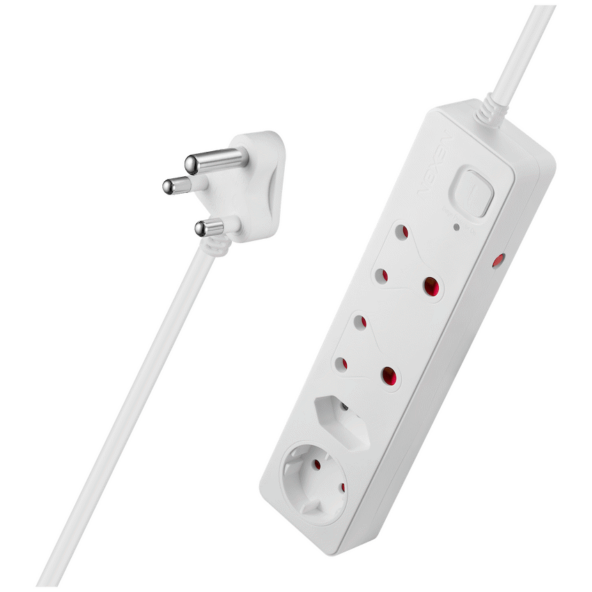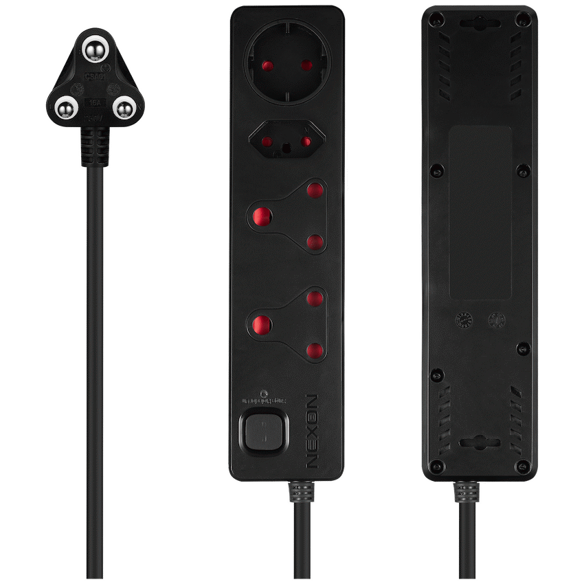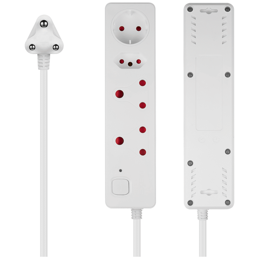 • Features four versatile sockets: two 16A (standard 3-pin), one 16A SANS 164-2, and one 10A Schuko.