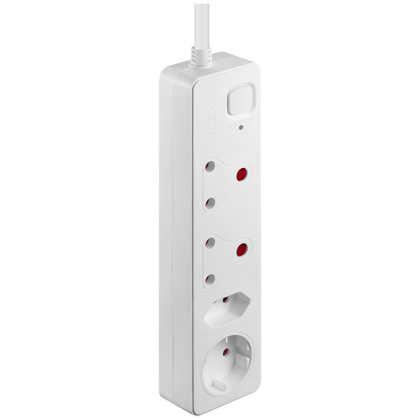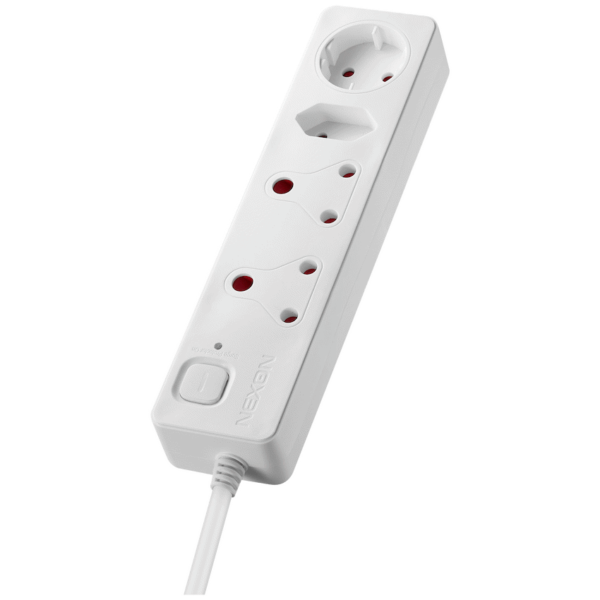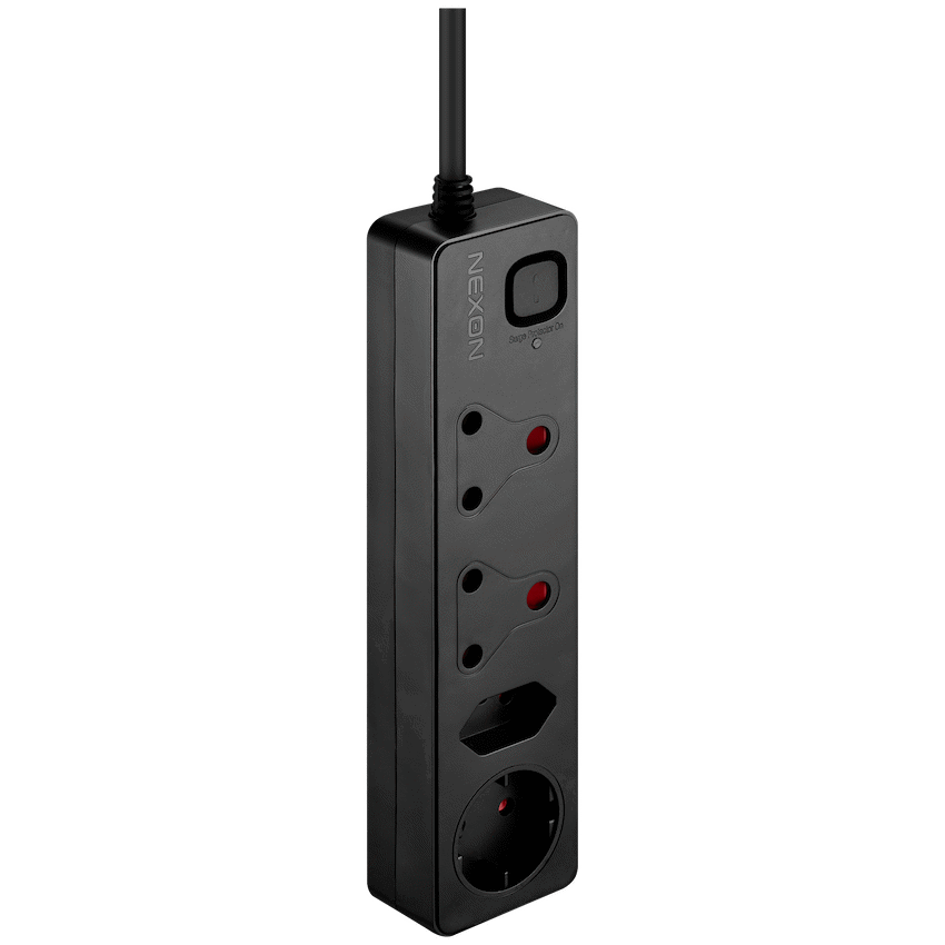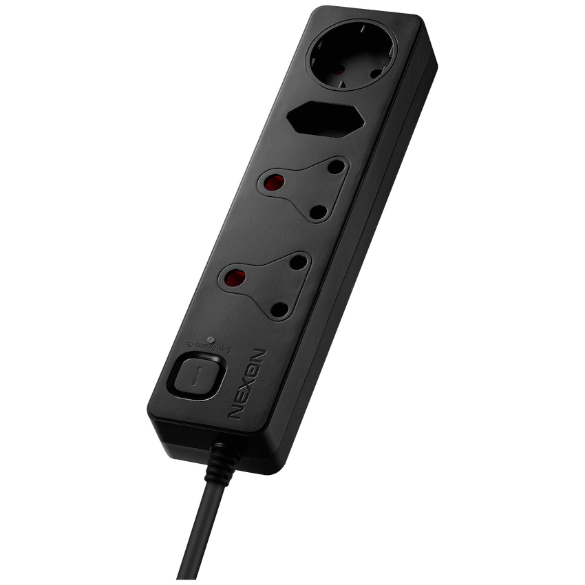 This Nexon multiplug protects home and office electronics from damaging power surges. It provides 375J medium surge protection through four versatile sockets, including standard 3-pin and Schuko types. A 0.5m cord allows convenient placement, offering practical power management from Nexon.