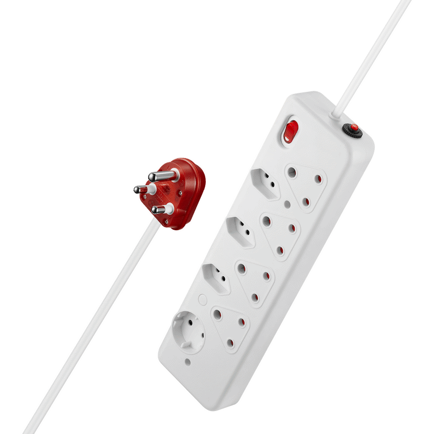 - The multiplug includes 4x 3-pin sockets, 3x SANS 164-2 sockets, and 1x Schuko socket to suit various plug types common in South Africa.