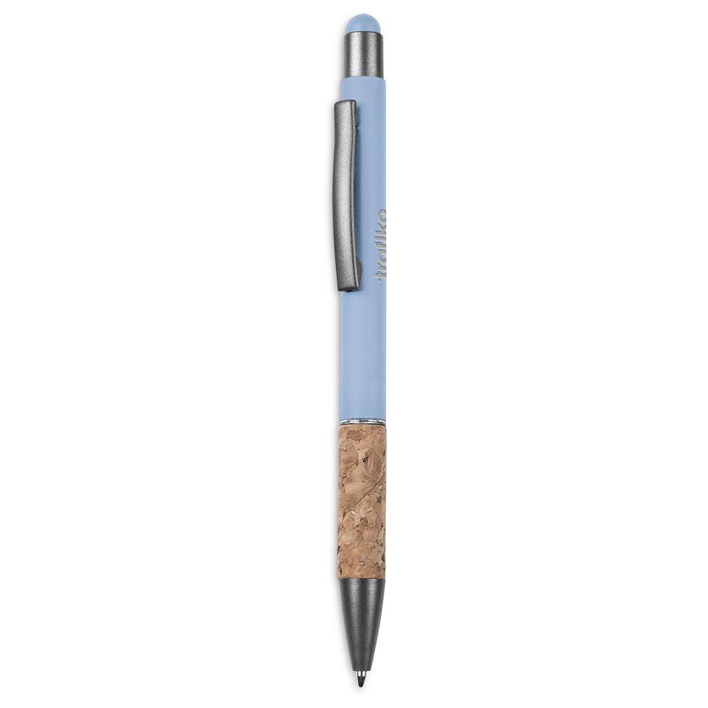 The Okiyo Denki Stylus Ball Pen provides both traditional writing and touchscreen interaction. Made from aluminium and cork, it features a comfortable cork grip and a stylus top. It uses black German ink, allowing for extensive writing. A practical choice for your daily tasks from Okiyo Denki.
