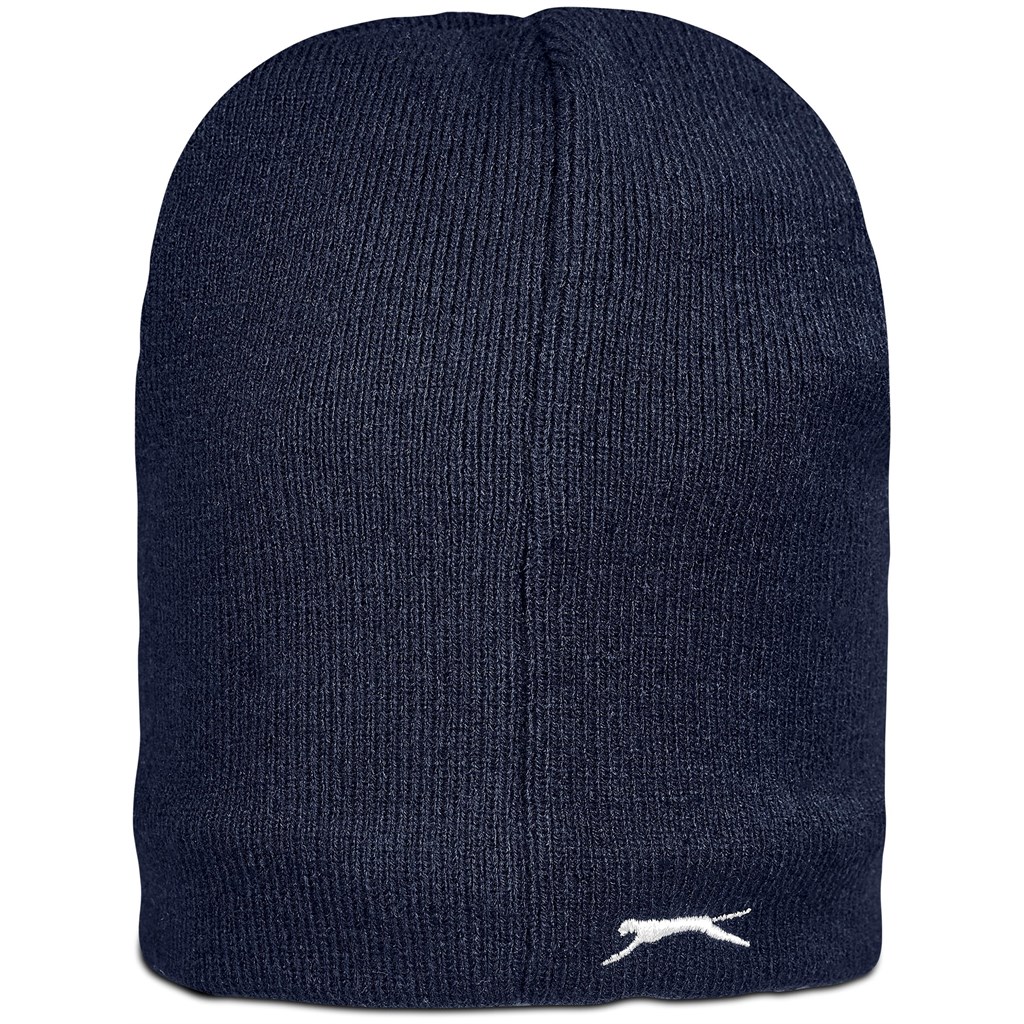 The Ontario Acrylic Beanie provides warmth and comfort during colder weather. It has an acrylic rib knit outer and a soft polyester fleece lining. This lightweight beanie is easy to care for and water-repellent. An embroidered Slazenger logo appears on the back.