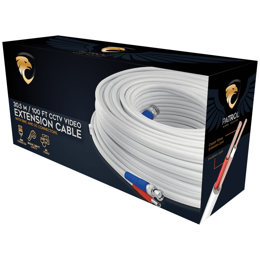 Easily extend video and power connections with the Patrol 30m white extension cable. This cable offers 30 metres of reach, blending well into most environments. It is a dependable Patrol product for your setup needs.