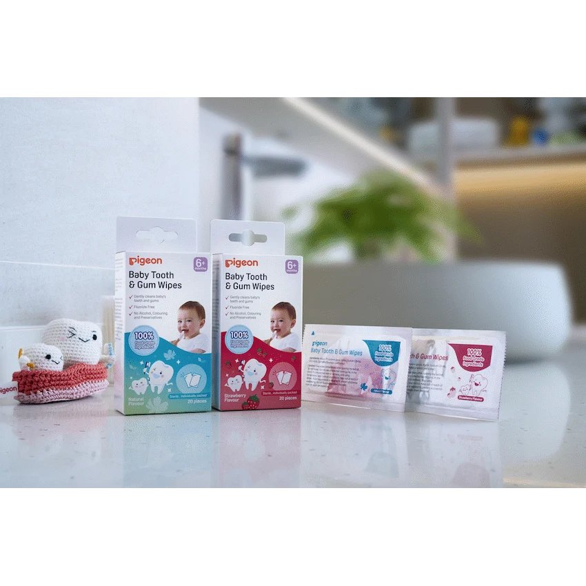 Pigeon Baby Tooth & Gum Wipes gently clean your baby’s teeth and gums, removing food particles. Each pack contains 20 individually wrapped wipes made with 100% food-grade ingredients. The strawberry flavour helps make oral care simple for parents, reflecting Pigeon’s dedication to baby hygiene.