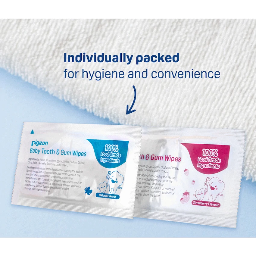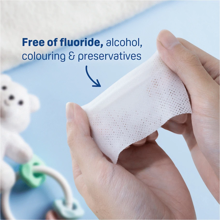 - The wipes gently clean baby’s teeth and gums, effectively removing food particles.