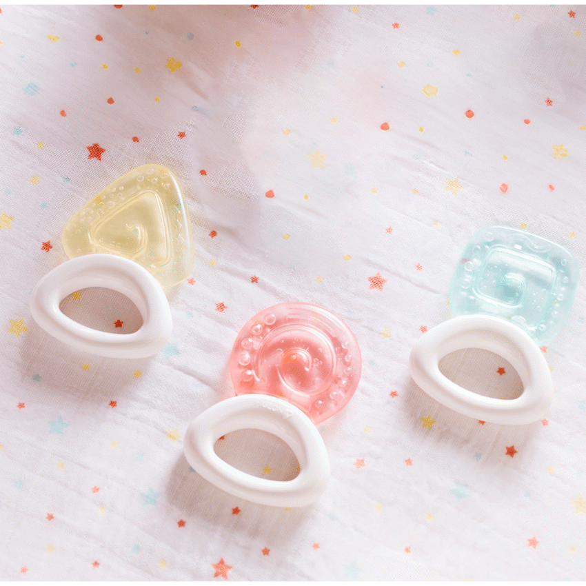 - Contains safe, sterilised water that cools in the fridge to soothe baby’s gums.