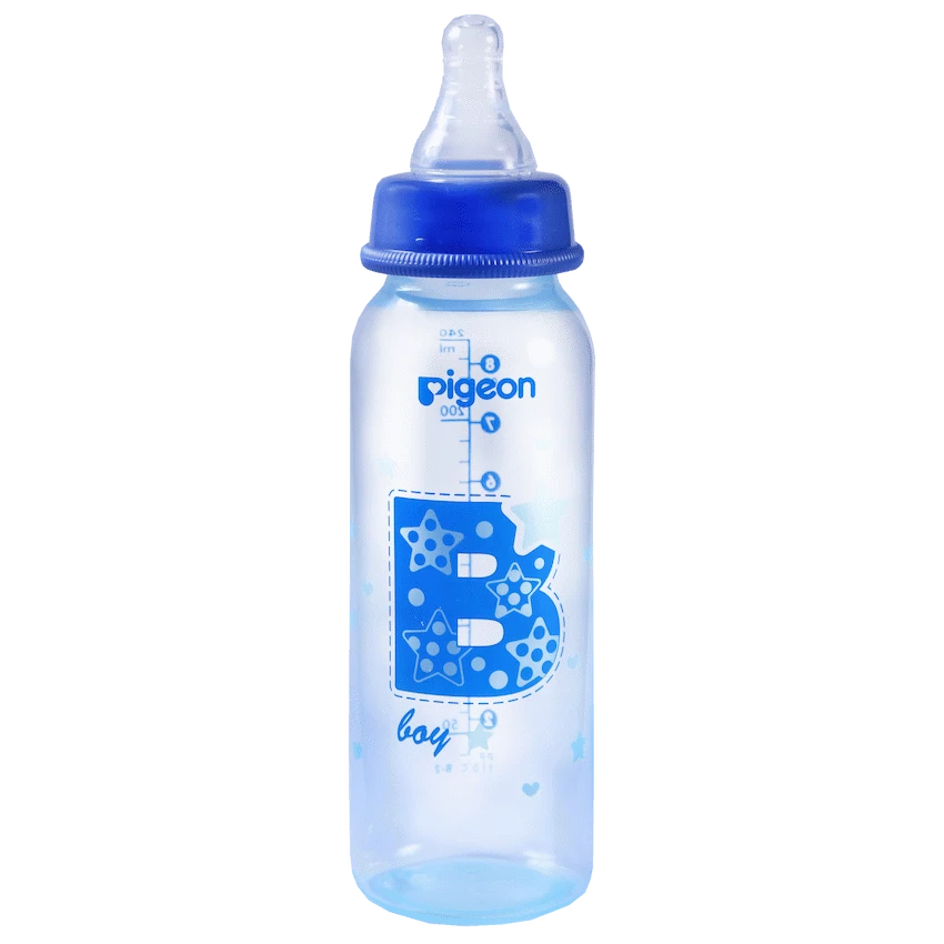 The Pigeon 240ml Flexible Bottle makes feeding easier for infants aged 3 months and older. It features a soft silicone nipple for simple latching and a blue balloon design. This lightweight plastic bottle is a practical choice from Pigeon.
