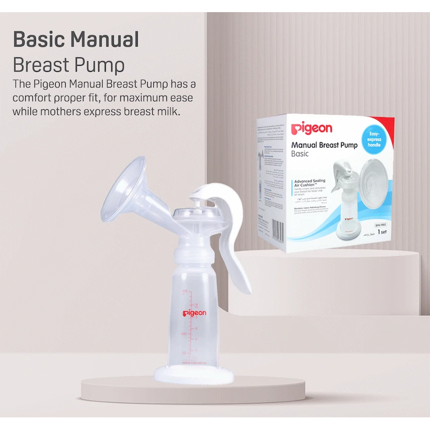 Express breastmilk simply and comfortably with the Pigeon Manual Breast Pump Basic Model. It has an Advanced Sealing Air Cushion for gentle stimulation and an ergonomic handle to reduce hand fatigue. This pump helps new mothers with their feeding needs.