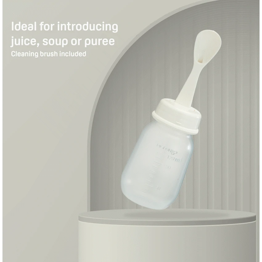 - This set includes a weaning bottle and a soft spoon, designed for feeding infants.