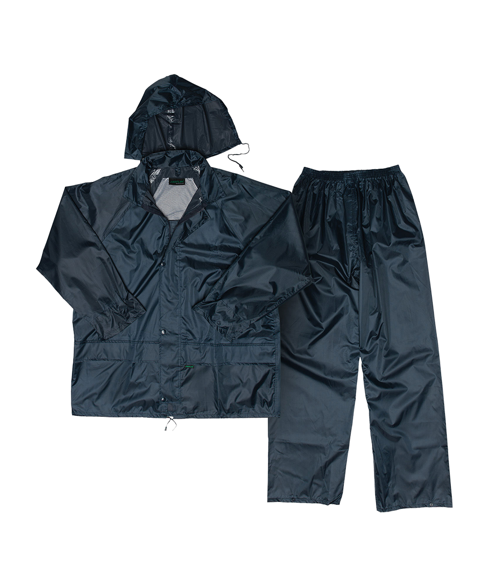 - Made from durable Polyester PVC 185 g/m² material, this rain suit provides waterproofing up to 5000mm, with double-needle stitching and heat-sealed taped seams.