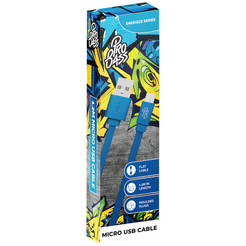This Pro Bass Energize Series Micro USB cable provides dependable charging and data transfer for your Micro USB devices. Measuring 1.2 metres, this black cable is a practical accessory. It works with compatible smartphones and tablets, offering reliable everyday connectivity from Pro Bass.