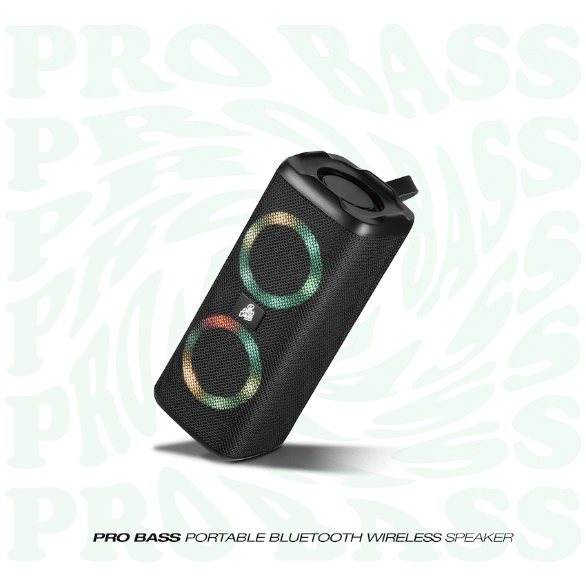The Pro Bass Pulse Box provides clear, portable sound for various settings. It has 6W RMS audio output and connects wirelessly via Bluetooth 5.3. Enjoy music from USB drives, SD cards, or the built-in FM radio with this compact Pro Bass speaker.