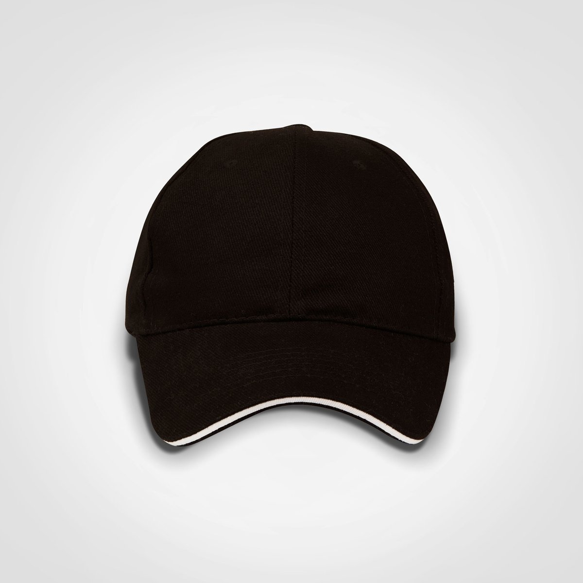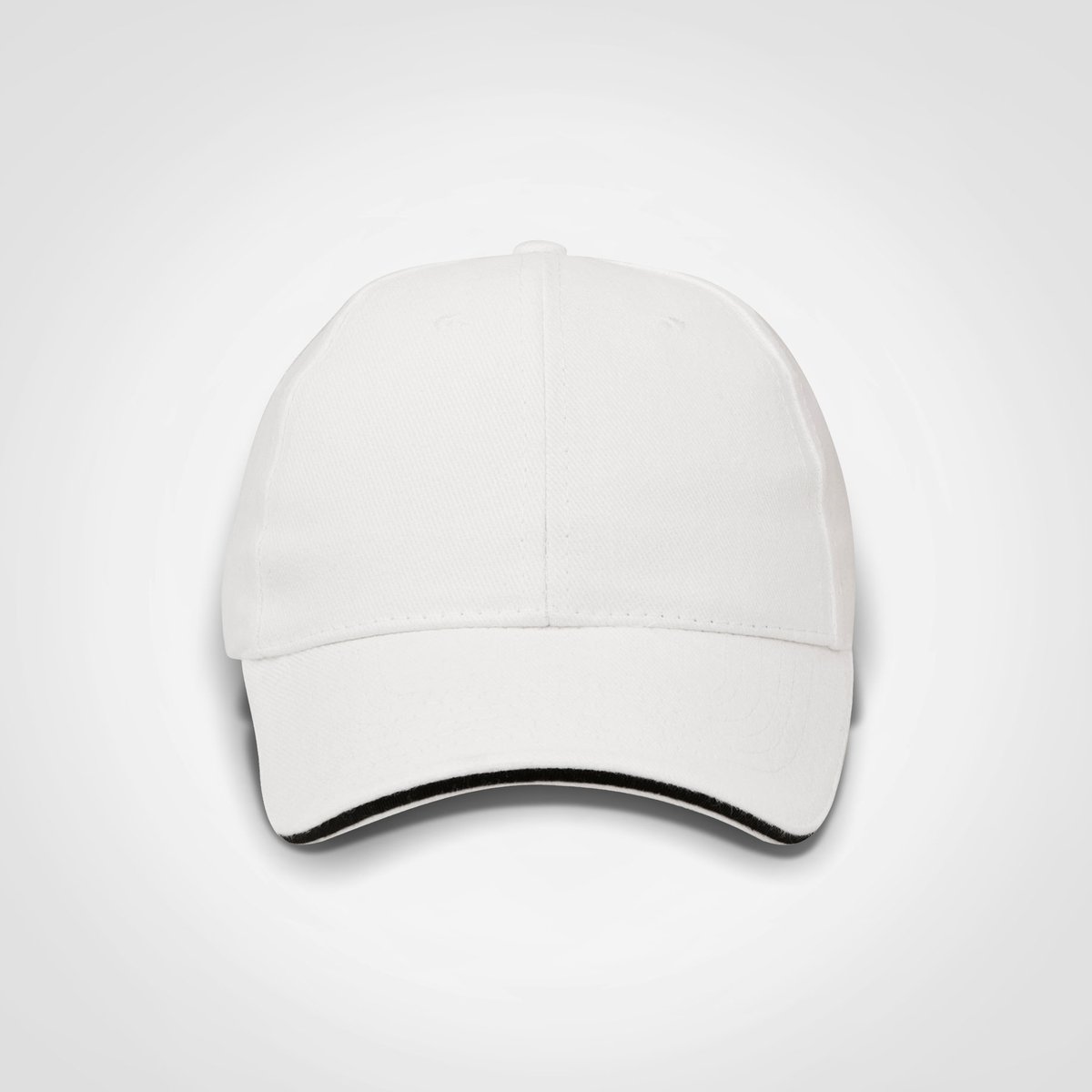 - The cap has a pre-curved peak with a contrasting sandwich insert.