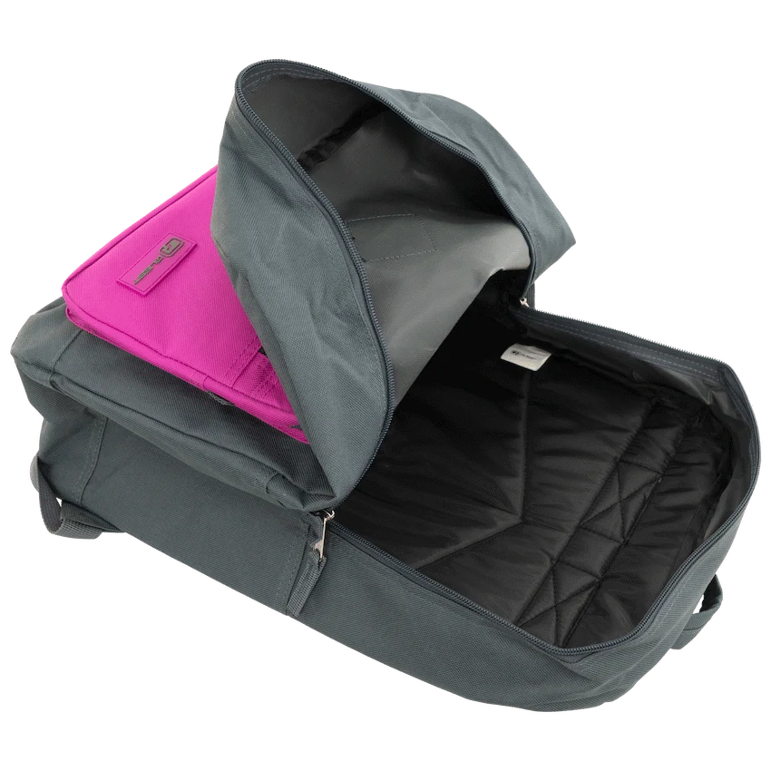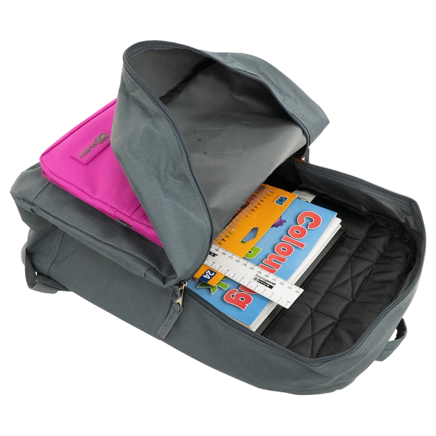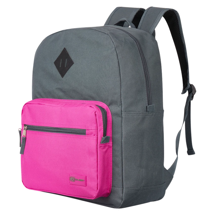 The Quest Colourtime Dark Grey/Pink backpack is a practical choice for general promotional campaigns, offering daily utility for students or commuters.