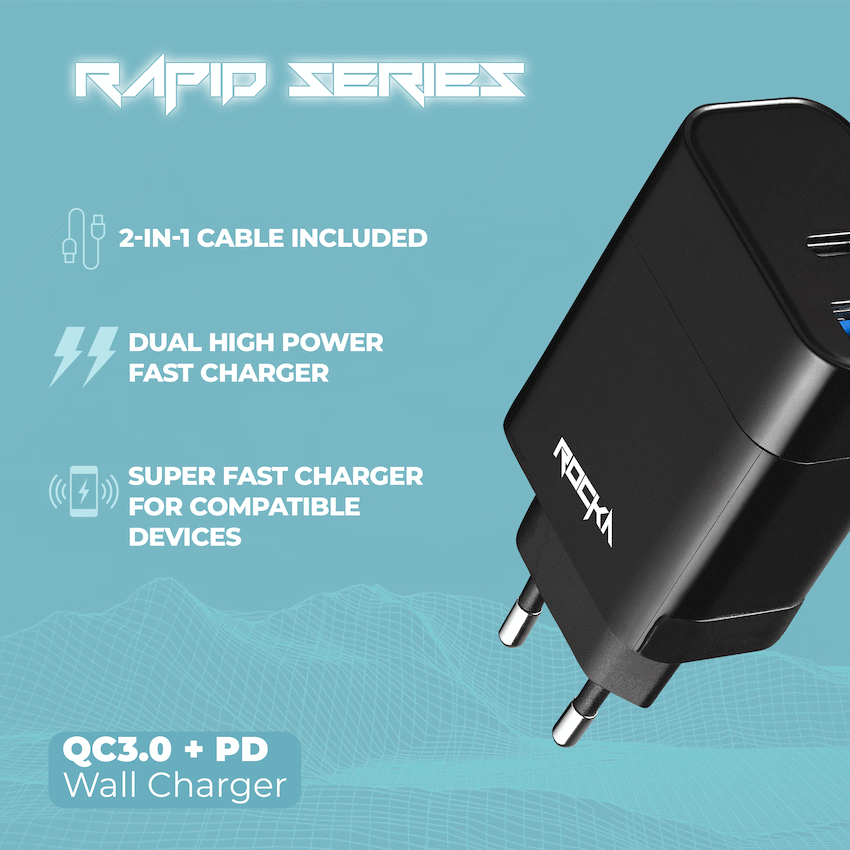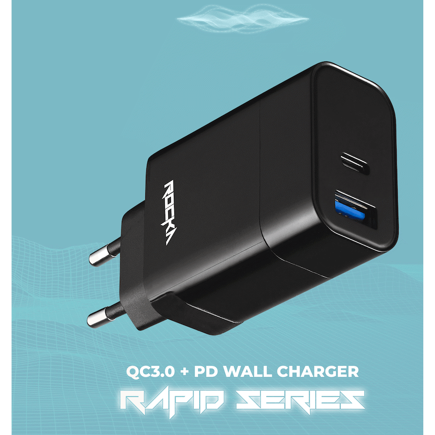 Rocka Rapid Series QC3.0 + PD Wall Charger, 18w, with Cable