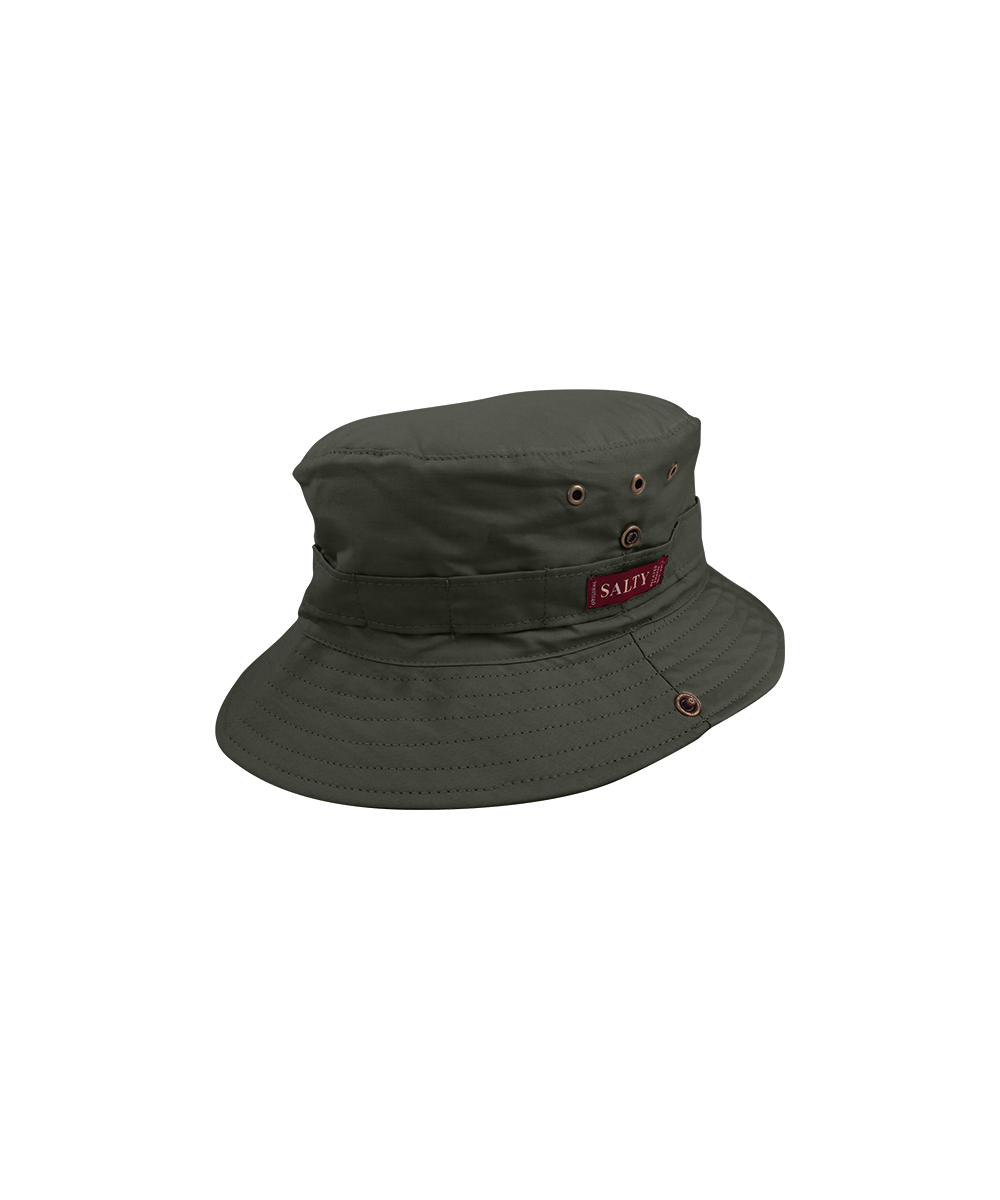 - Features a double-layer brim for added shade and brass eyelets for ventilation.