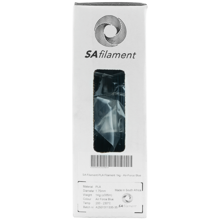Achieve dependable 3D prints with SA Filament Air-Force Blue PLA. This biodegradable 1kg, 1.75mm filament gives smooth extrusion and consistent layer adhesion. It provides an environmentally friendly option for your printing projects from SA Filament.