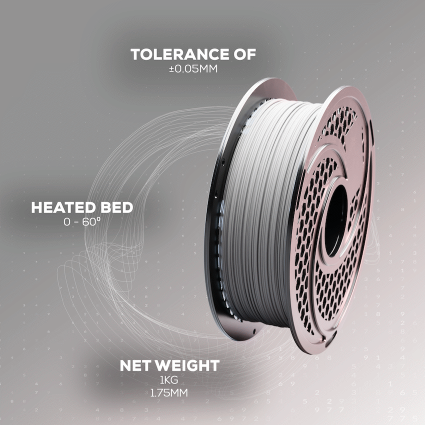 - Each spool contains 1kg of light grey PLA filament, with dimensions of L:200 x W:58 x H:200 mm.