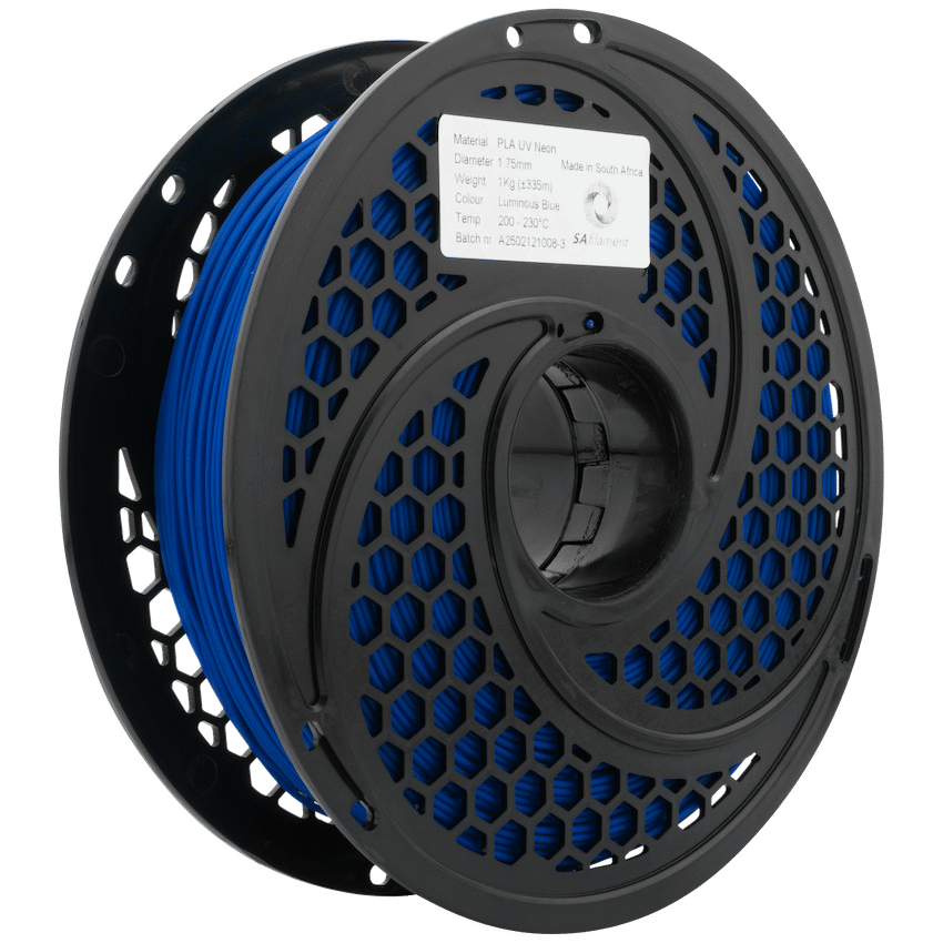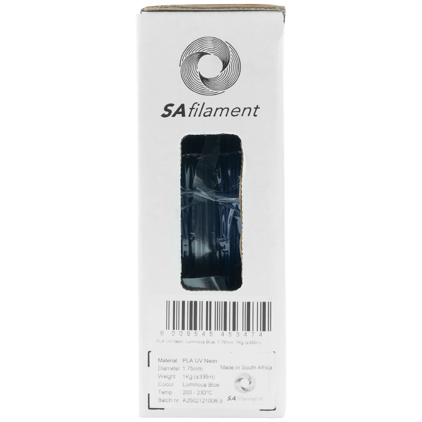 Create distinctive 3D printed items with SA Filament PLA UV Neon Luminous Blue. This 1kg spool of biodegradable PLA produces noticeable objects in a striking UV Neon colour. Its 1.75mm diameter allows for smooth extrusion and consistent layer adhesion, showing SA Filament’s reliable performance.