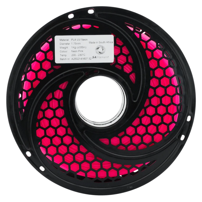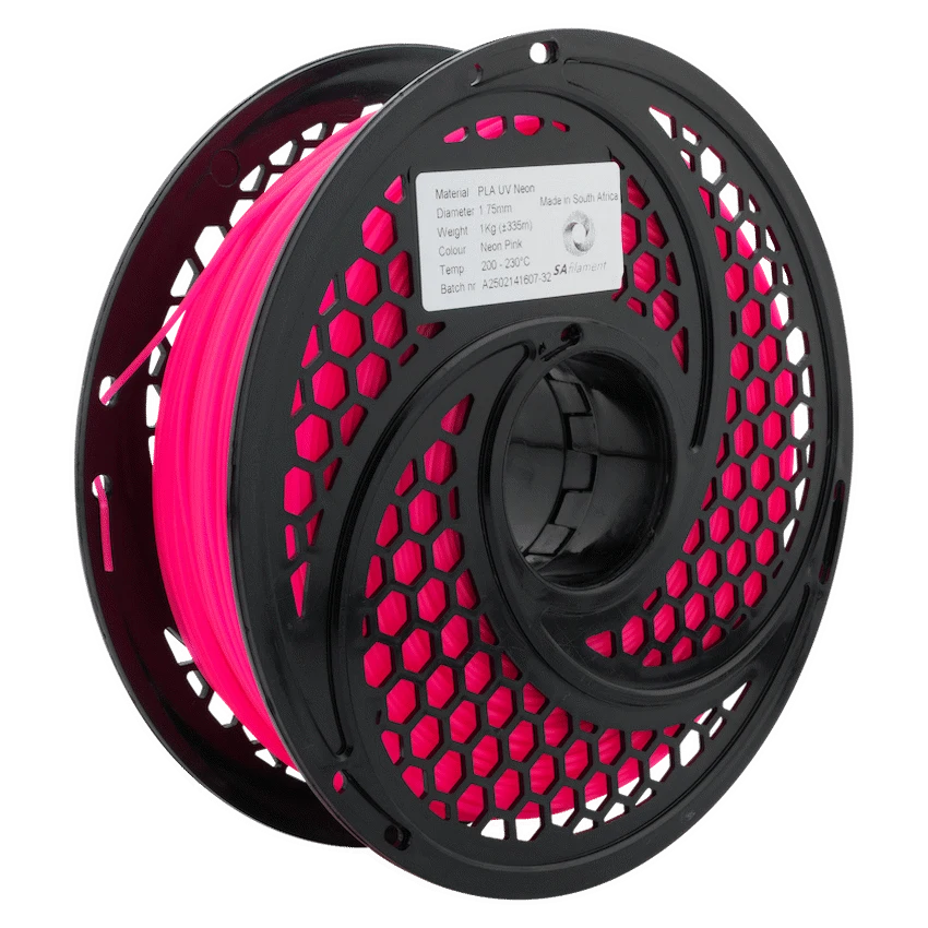 - This SA Filament PLA UV Neon filament weighs 1kg and comes in a bright pink colour.