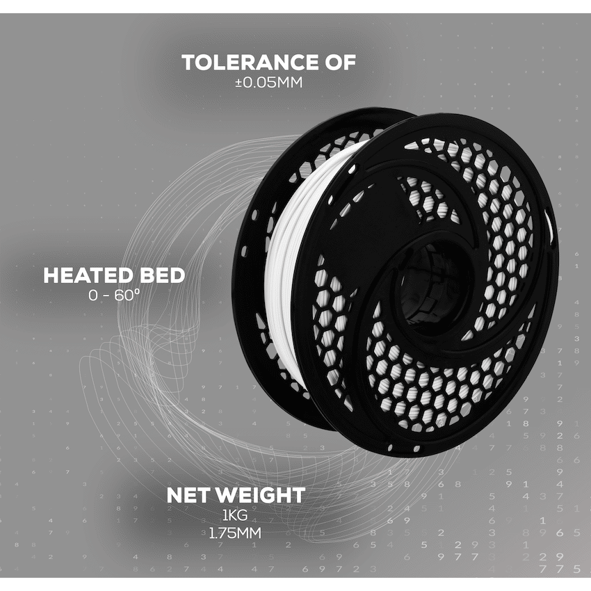 • This 1kg spool of white filament is suitable for a range of 3D printing applications, measuring L:200 x W:58 x H:200 mm.