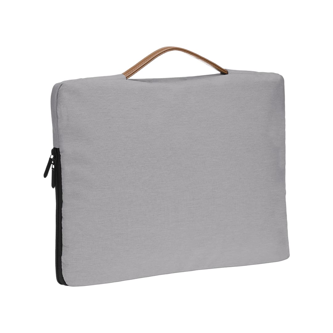 Protect 15-inch laptops with this Santhome sleeve. It features a padded compartment and a durable 300D frosted fabric and PU material build. The black and tan design offers a practical item for promotional branding campaigns.
