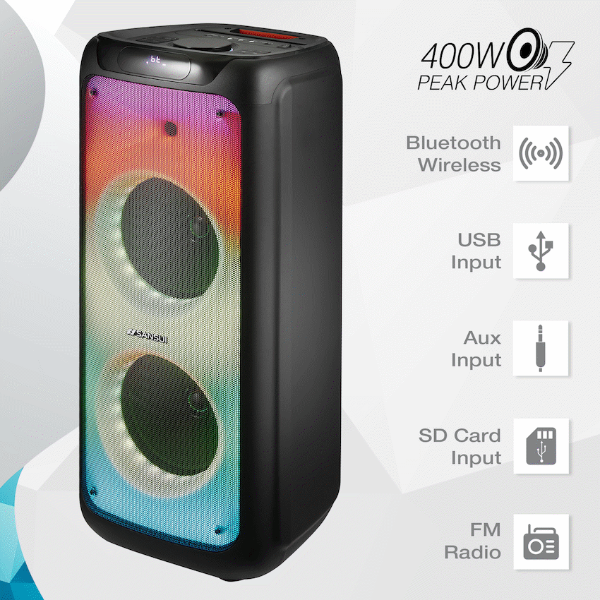 The Sansui SNP100 Party Speaker provides powerful sound for corporate functions and events. It features Bluetooth True Wireless technology and dual 10-inch speakers for clear audio. This Sansui speaker offers practical sound for any gathering.
