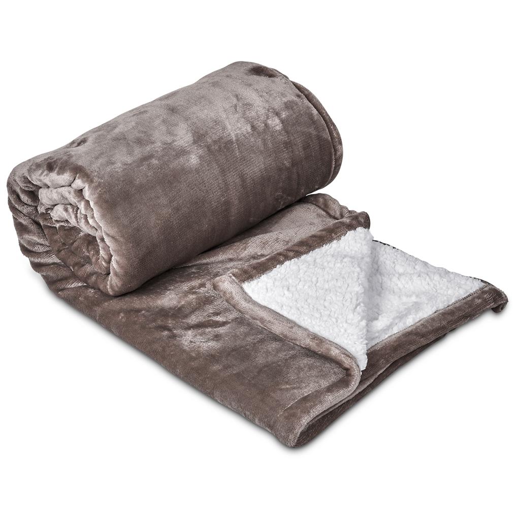 - The blanket features a double-layered design with 220gsm flannel fleece on one side and 180gsm Sherpa on the other.