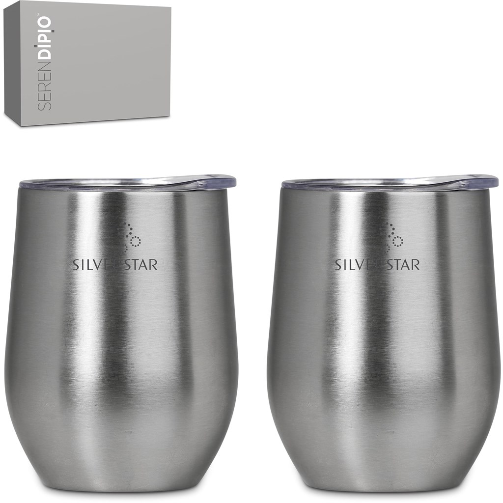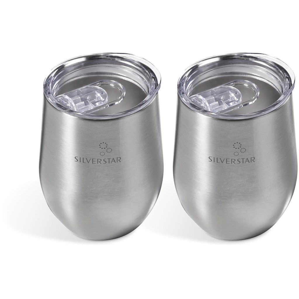 - This set includes two stainless steel, BPA-free cups, each with a 300ml capacity and measuring 11cm (h).