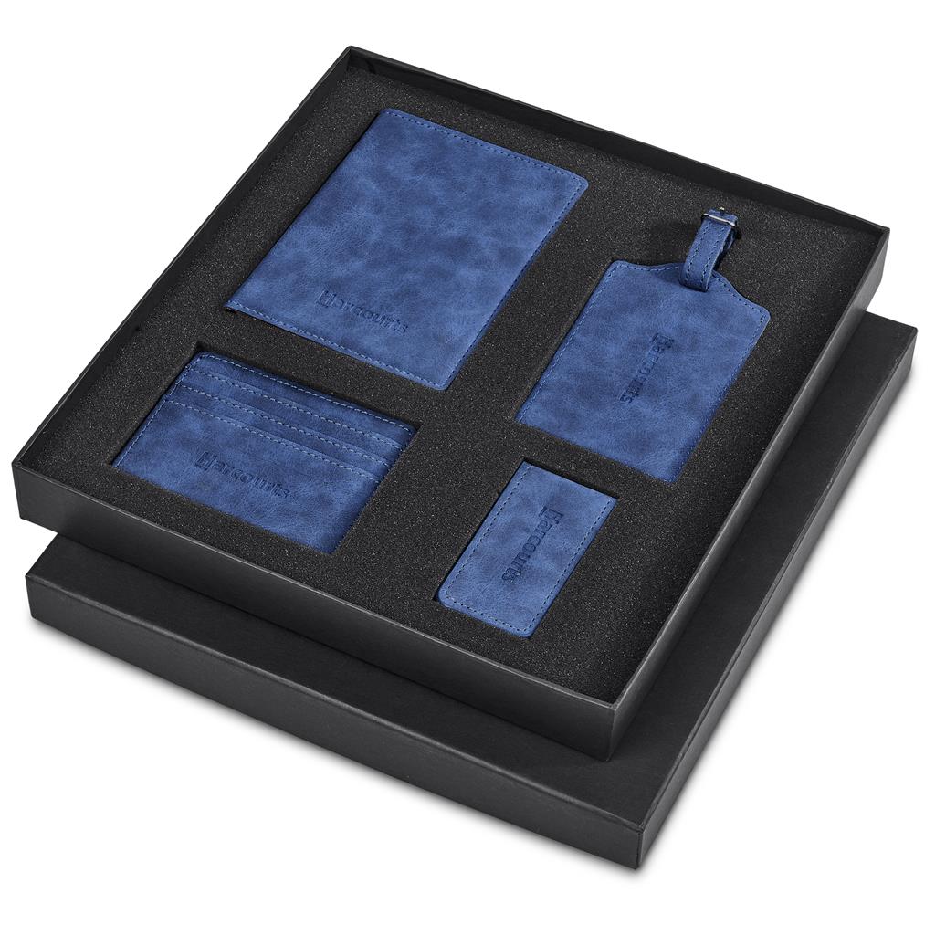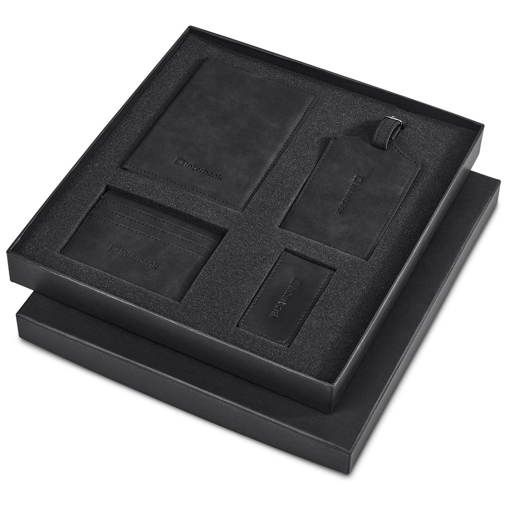 This practical Serendipio Tourist Travel Set helps clients and staff stay organised on trips. It includes a brushed PU passport holder, luggage tag, card holder, and money clip. The set is a thoughtful promotional gift, presented in a black gift box.